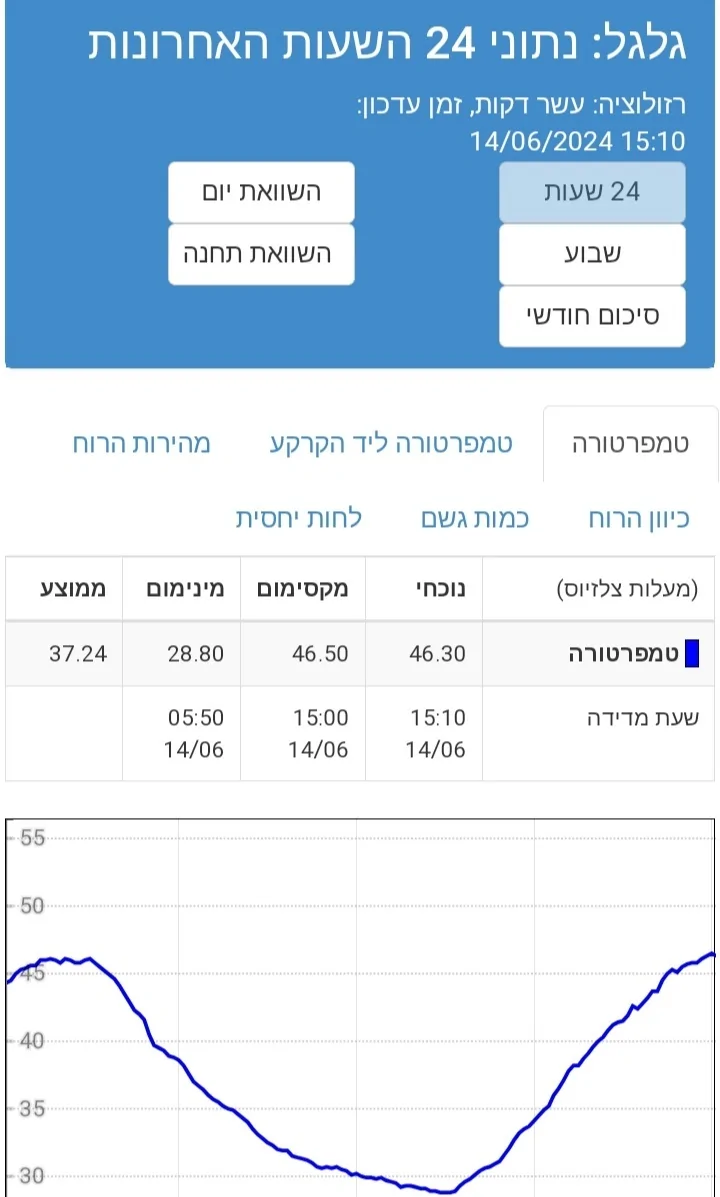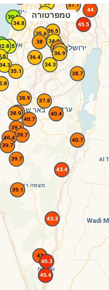 אמש נמדדו בקיבוץ גילגל (בקעת הירדן) 46.1°C מעלות