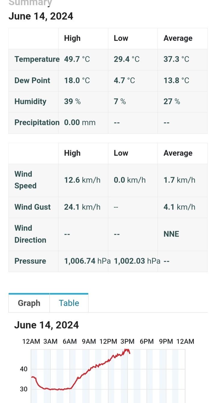 כמו כן, קיבוץ גילגל במקום הראשון מתוך הרשת הרשמית (והמצומצמת) עם 47.5°C בשעה 16:30