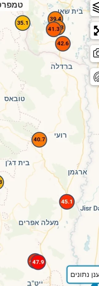 בבית שאן כעת 43.3 מע' עם 38% לחות