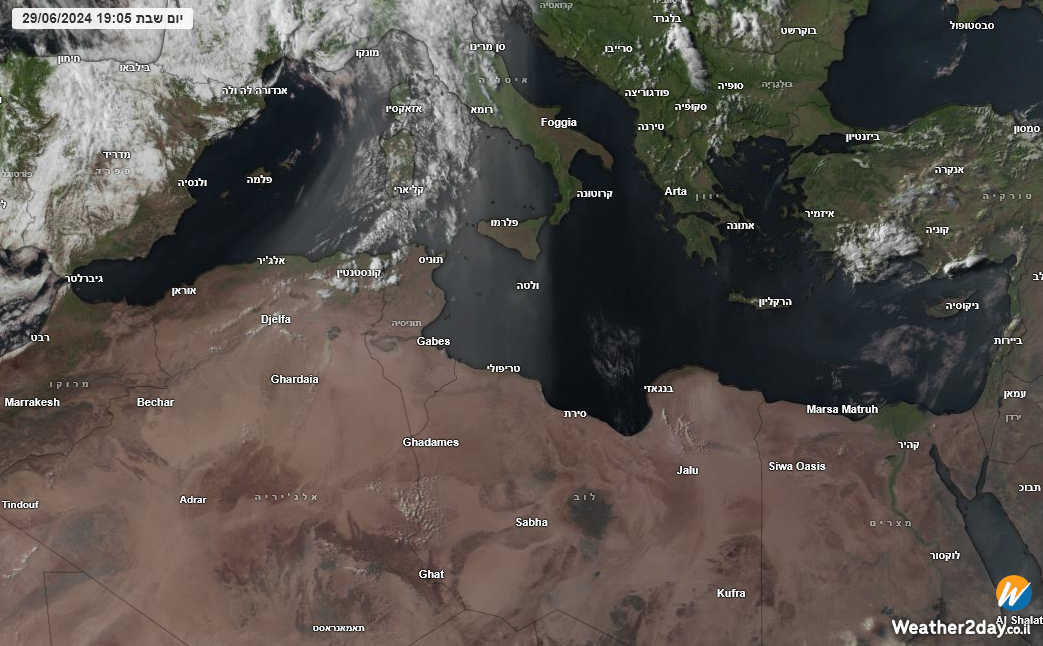 - האבק פולש לדרום אירופה - השוואה בין לווין אור נראה לתחזית האבק Weather2day