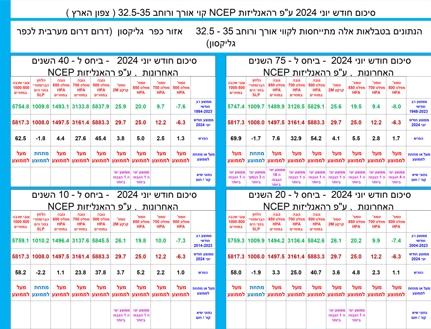 סיכום חודש יוני 2024 – ע"פ רהאנליזות NCEP - קווי אורך ורוחב : 35 – 32.5 – (צפון האר