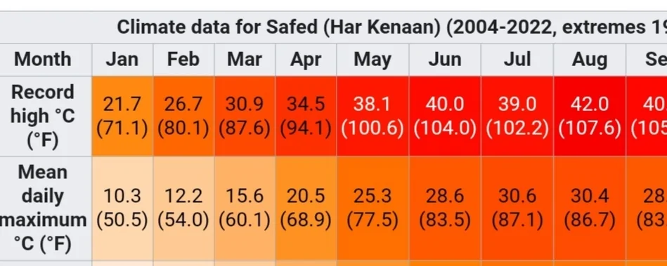 שבצפת טמפ' המקסימום ביולי הייתה 31 מעלות.