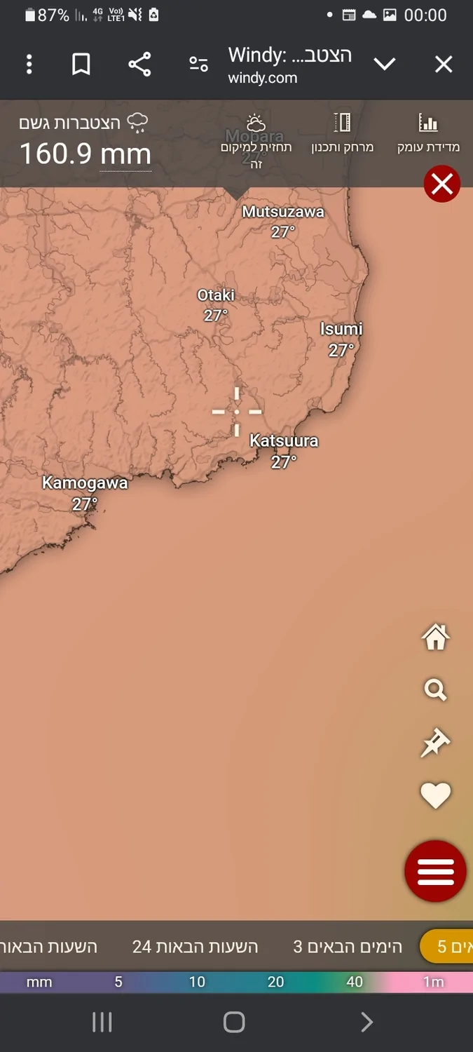 - צפוי להוריד כ-160 ממ מדרום מזרח לטוקיו חנוך א