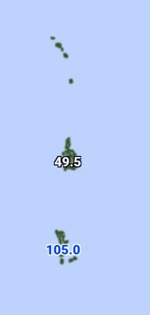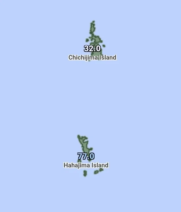 הוא נמצא הרחק מערבה (זה מקור שמו) מ-Chichijima וכמובן שאיננו מאוכלס