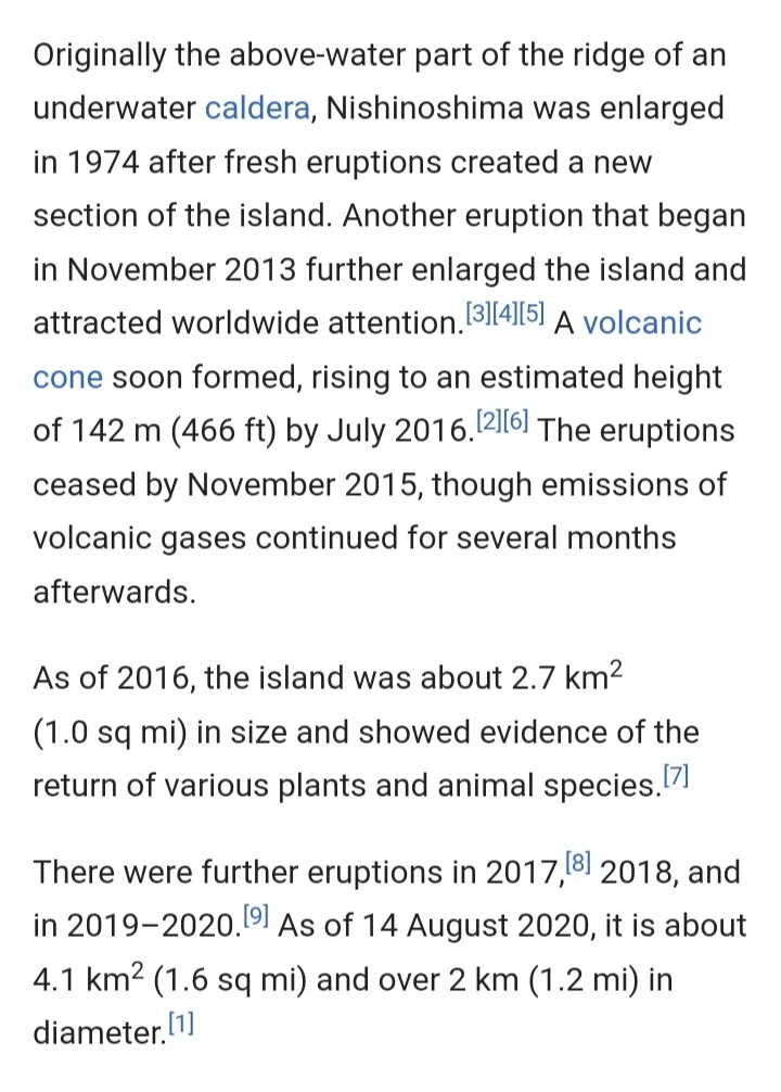 Nishinoshima הוא הר געש פעיל שבכל התפרצות גובהו ושטחו משתנים ללא הרף