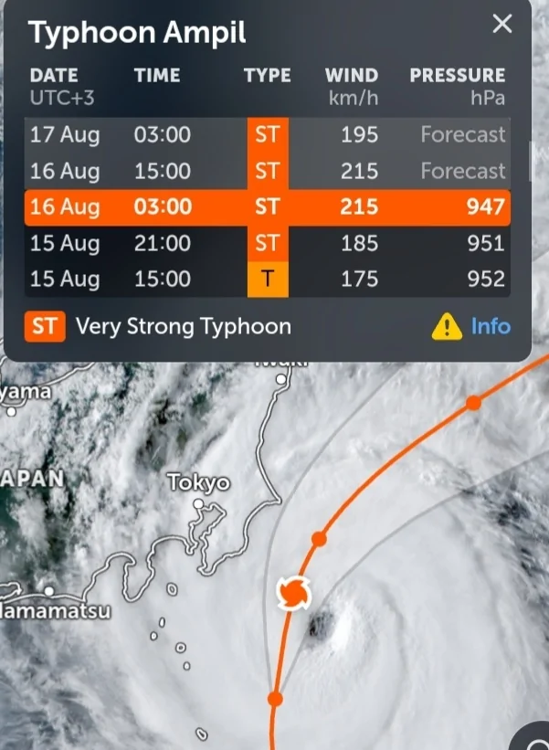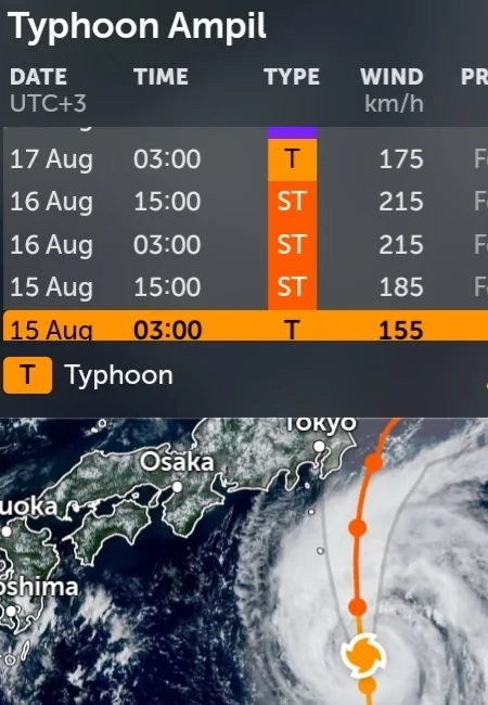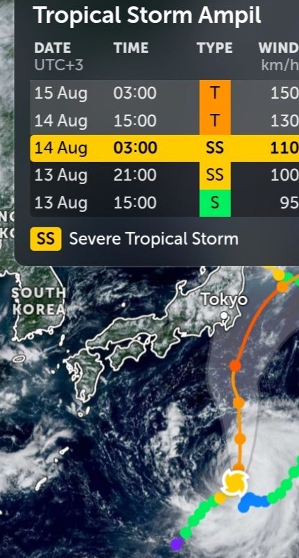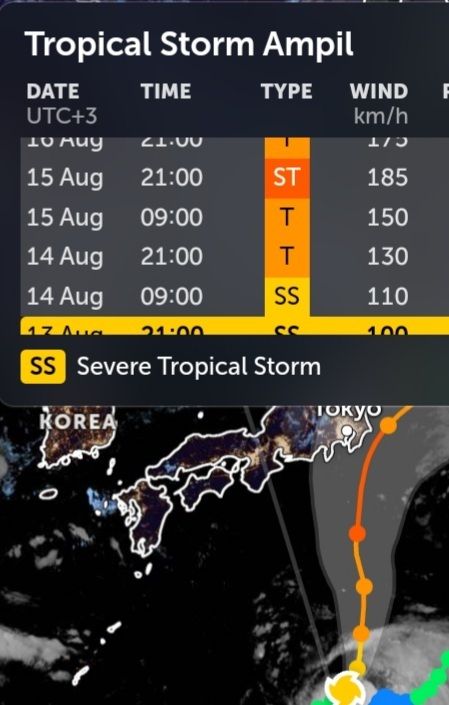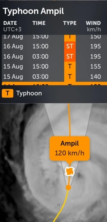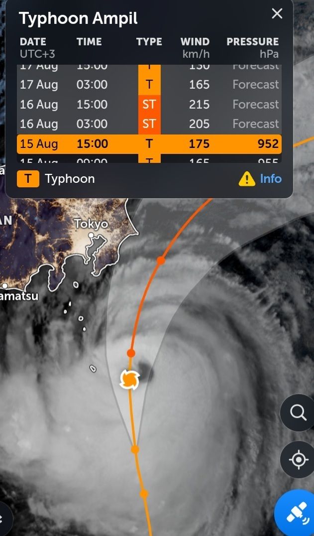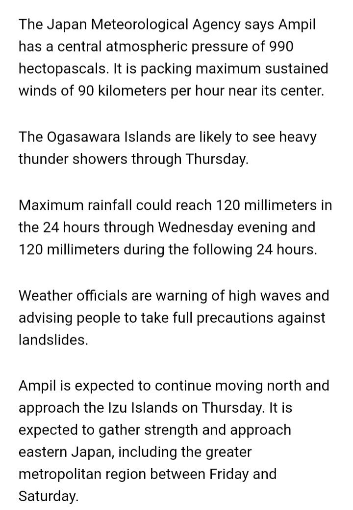 - המסלול של Ampil מתרחק קצת מיפן חנוך א