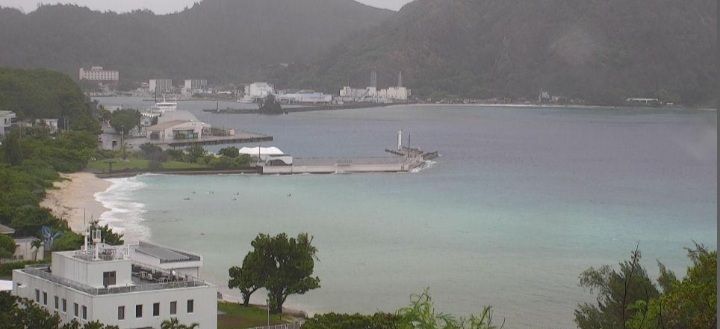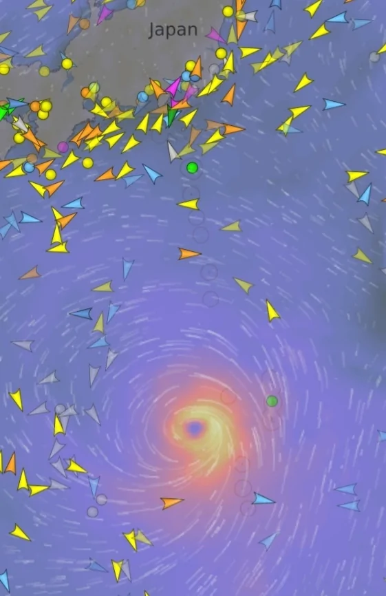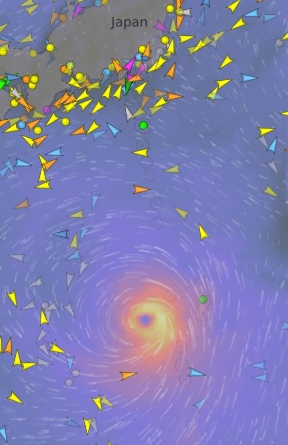 הנקודה הירוקה מימין לטייפון זו אוניה העוגנת באחד מאותם איים קטנים