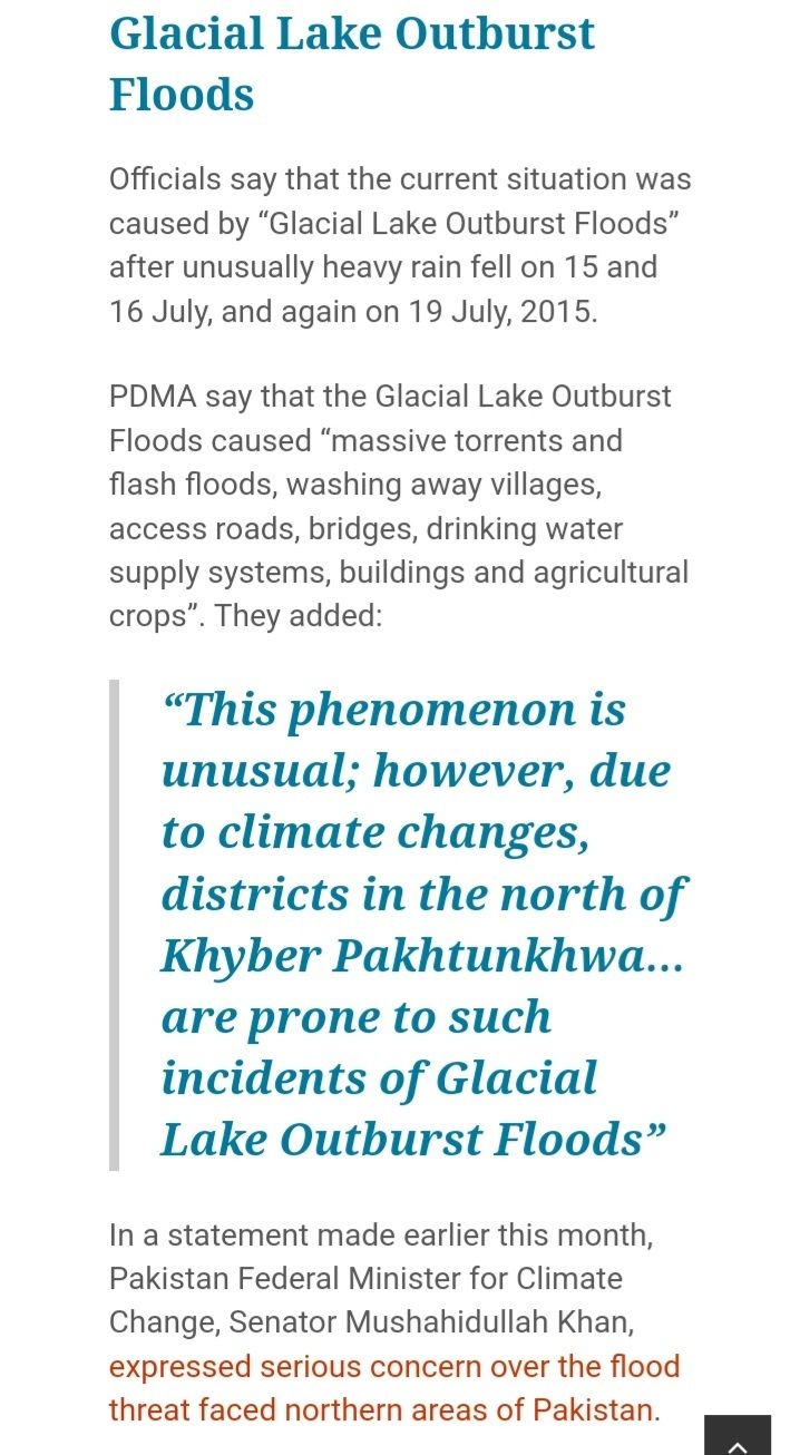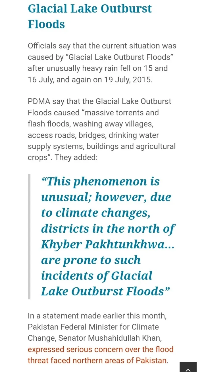 השיא היה לפני חודש כאשר עקב גשמים והמסת קרח מהירה, אגם בקצה קרחון עלה על גדותיו וגרם לשיטפון שניתק 300,000 אנשים בעמק