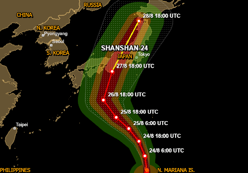 - טייפון שאנשאן "SHANSHAN" בדרך להכות בעוצמה ביפן Weather2day