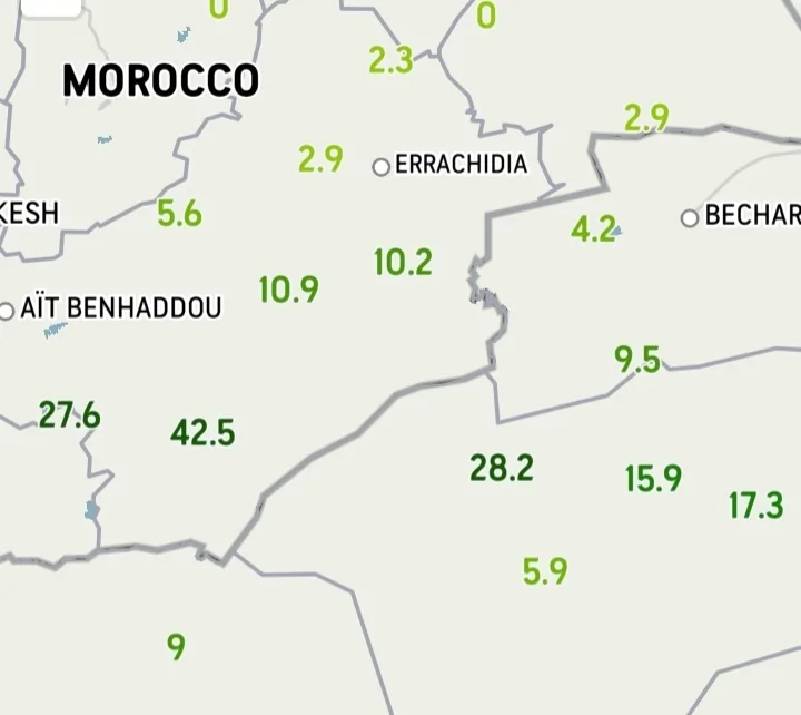 - צפי גשם בגבול מרוקו/ אלג'יר ל-24 שעות חנוך א