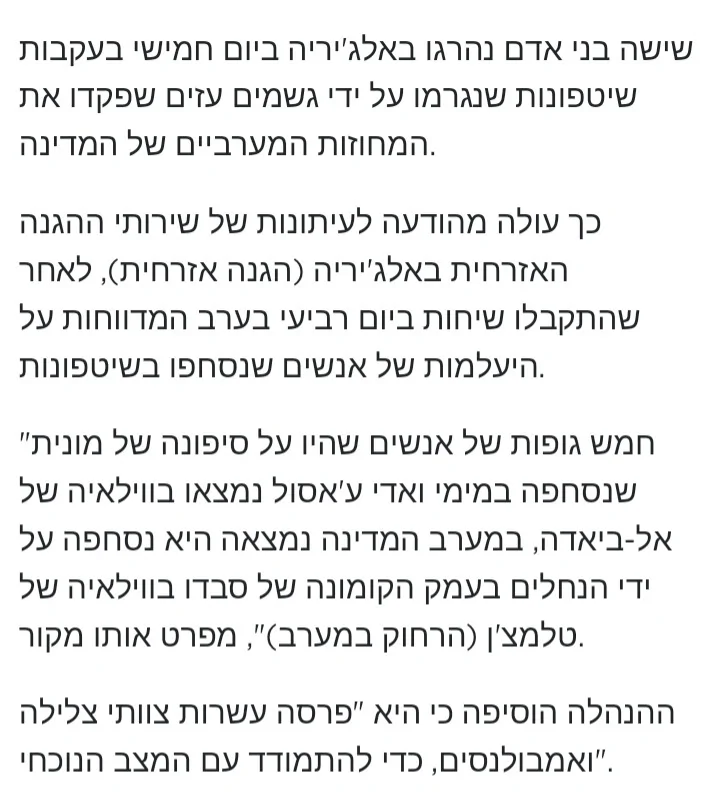 - שטפונות התחילו באלג'יריה בסוף מאי חנוך א