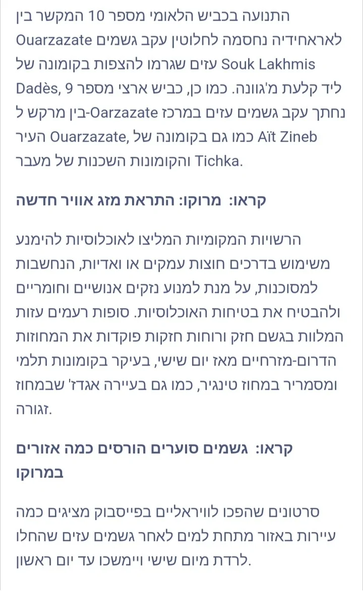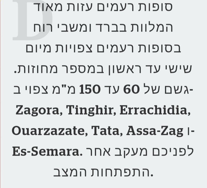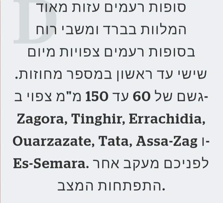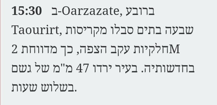 - וארזאזאת עם ממוצע של 110 ממ שנתי חטפה כמעט 50 ממ ב-3 שעות חנוך א