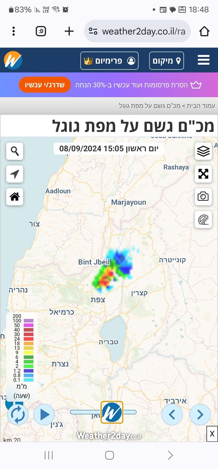 - יש גשם גשם מדיד כתוצאה מהתפתחות ענני הגשם בעמק החולה Weather2day