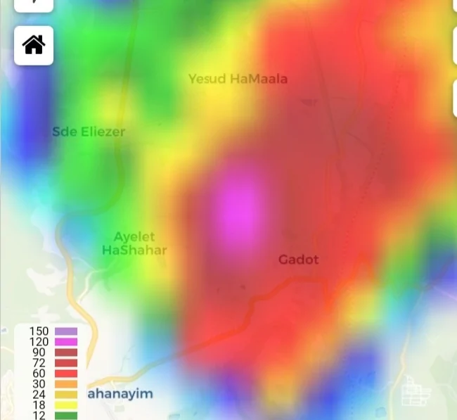 5.5 מ"מ באיילת השחר ו-4.8 מ"מ בתחנת אגמון החולה