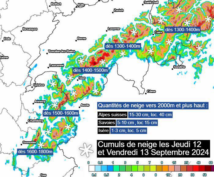 צפי ההיערמות במהלך יום חמישי ושישי מגובה 2000 מ' באלפים השוויצרים בין 15-20 ס"מ.