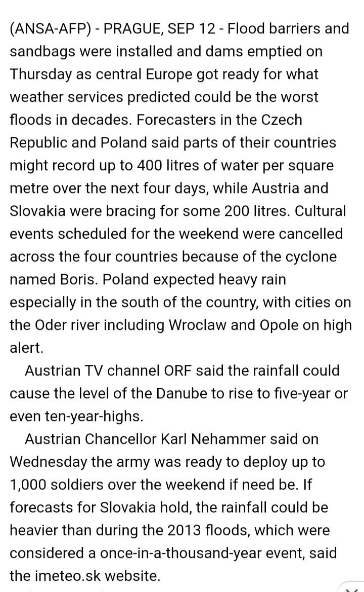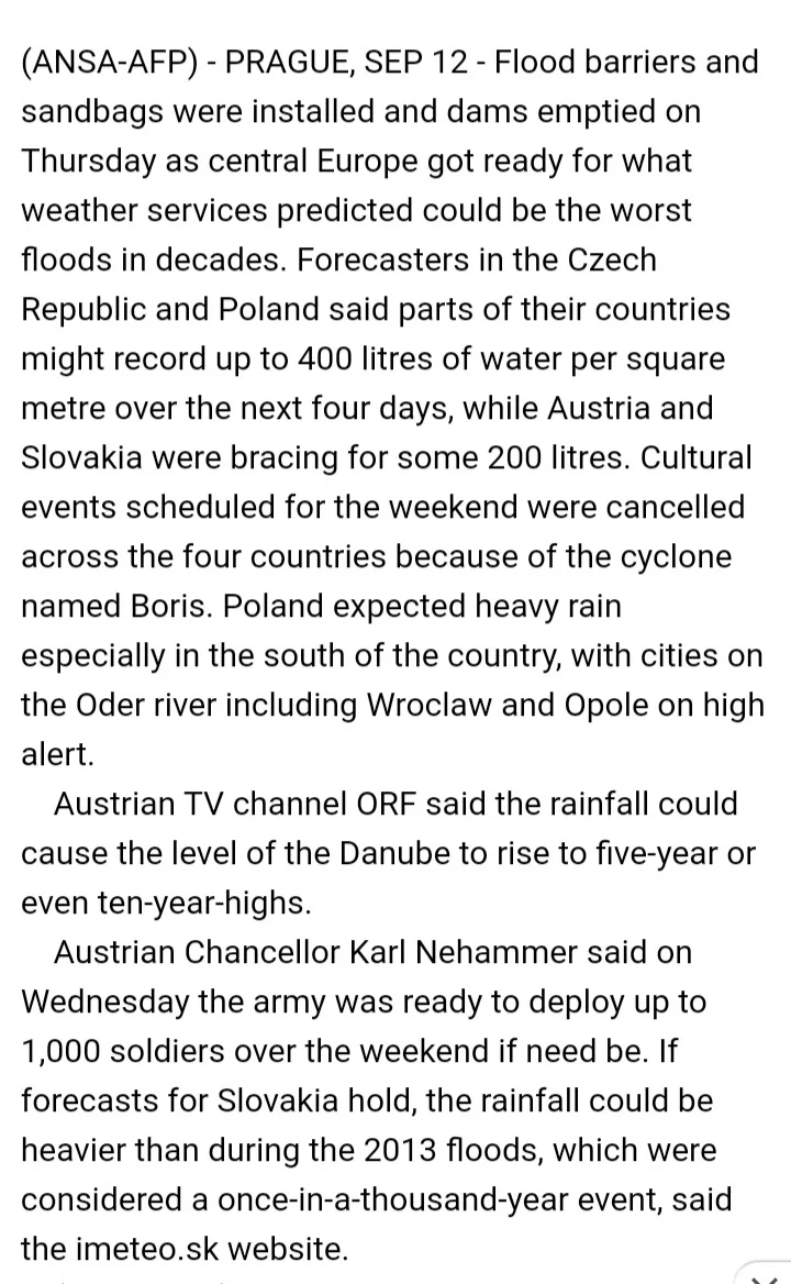- צפי ל-400 ממ במרכז אירופה ושטפונות מסיביים חנוך א