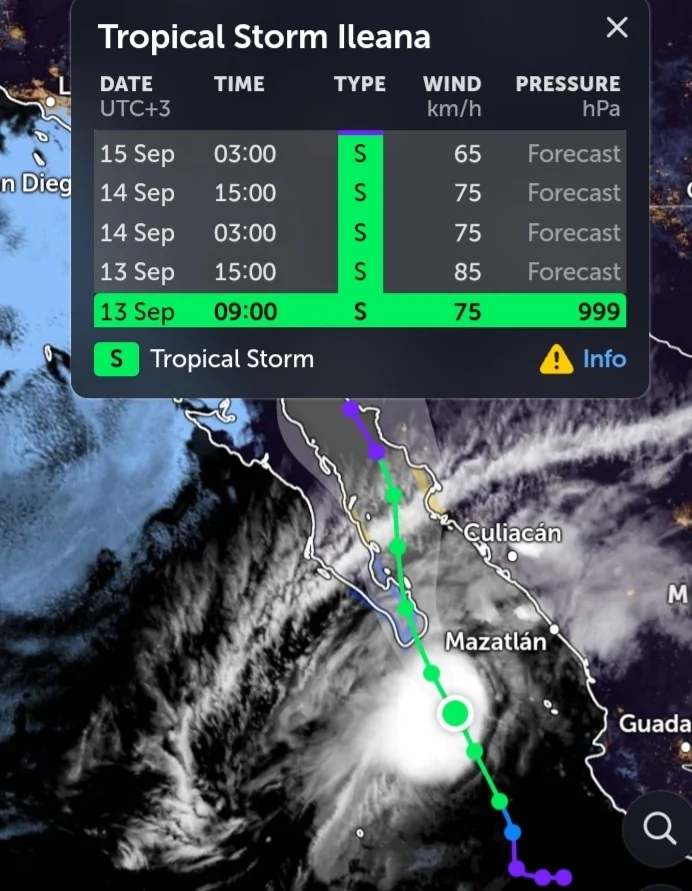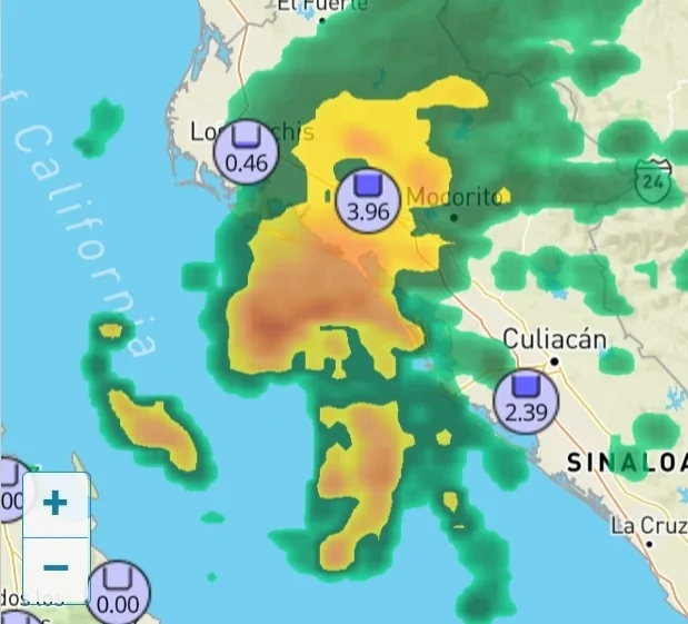 - המערכת והגשם עברו לצד המזרחי של מפרץ קליפורניה חנוך א