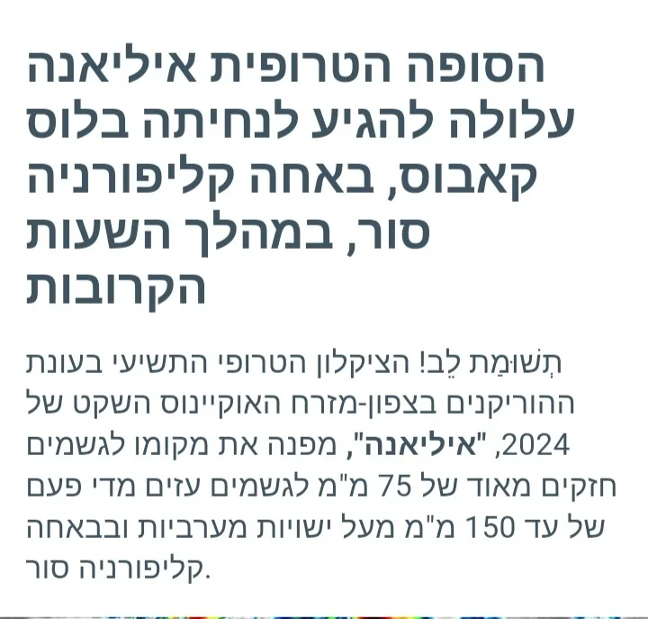 - המערכת צפויה להישאר מעל מפרץ קליפורניה חנוך א