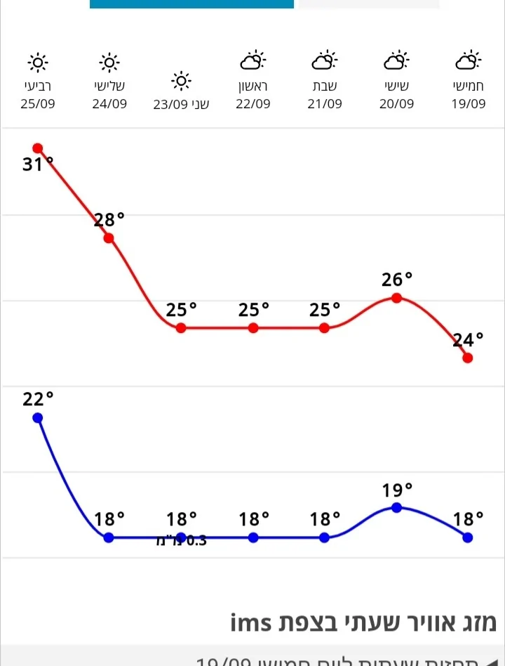 עם זאת, בסוף השבוע שוב צפויים לילות חמים יחסית בחוף, עם התגברות האפיקיות והעננות באיזורינו.