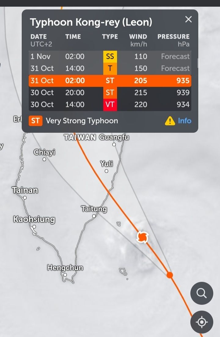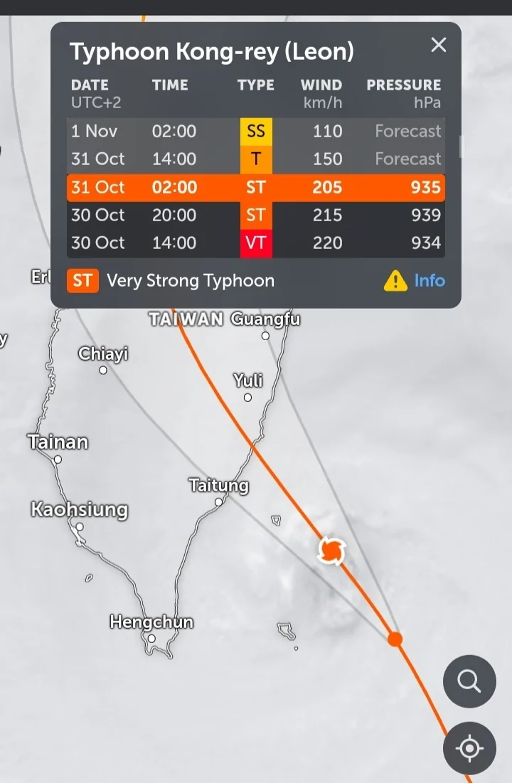 - Taitung בדרום מזרח טאיוואן צפויה לחטוף חזק חנוך א