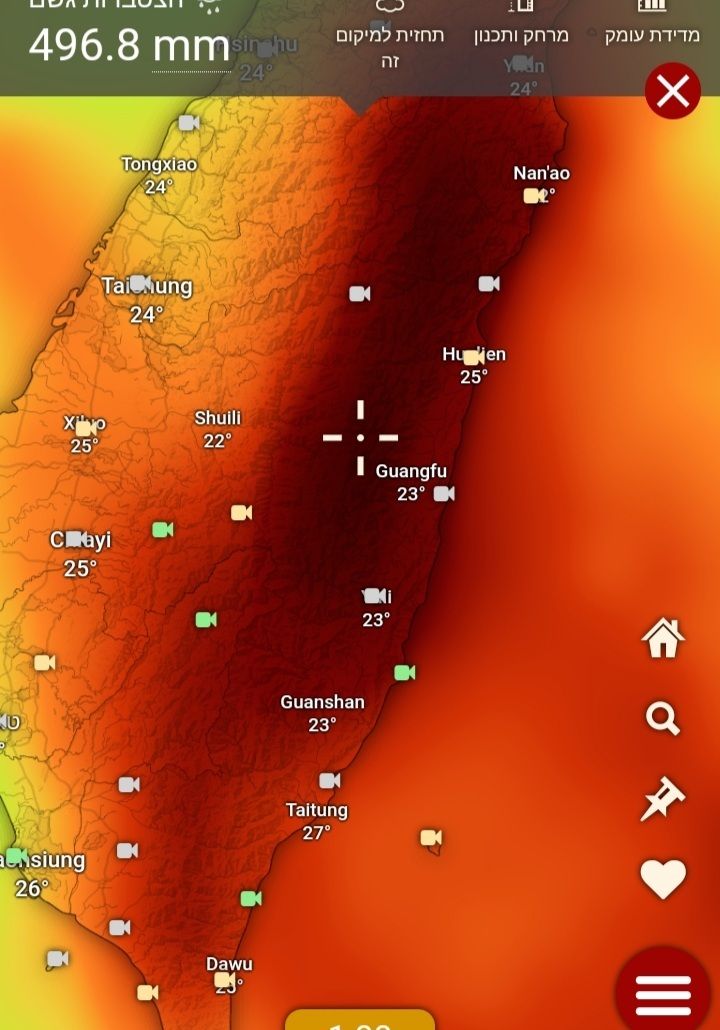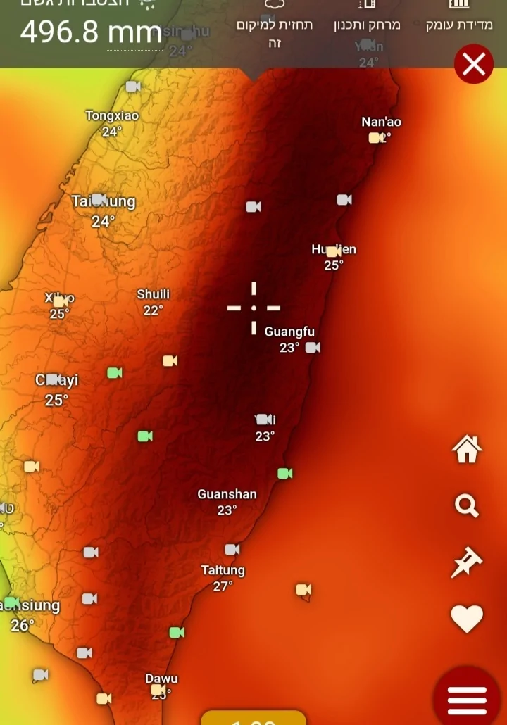 - צפוי להוריד חצי מטר גשם במזרח טאיוואן ובהרים חנוך א
