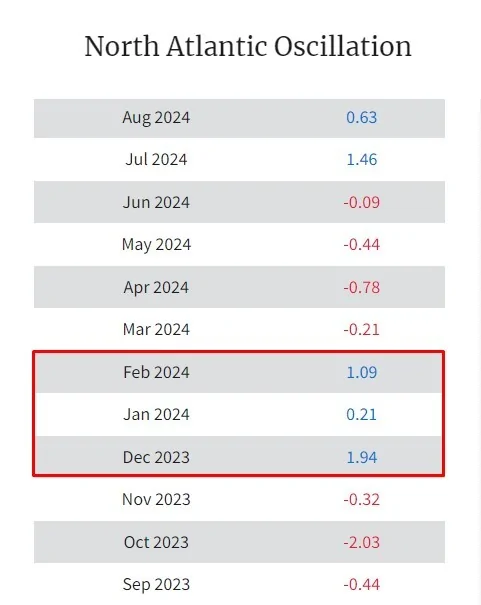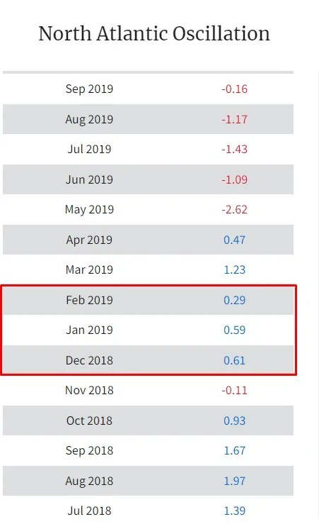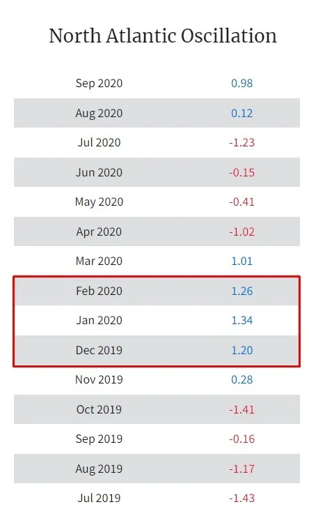 אני אעלה פה 3 תמונות מ3 חורפים גשומים לאחרונה (2019, 2020, 2024) שמציגות את אינדקס הNAO. הנתונים הם מהאתר של noaa - National Centers for Environmental Information.