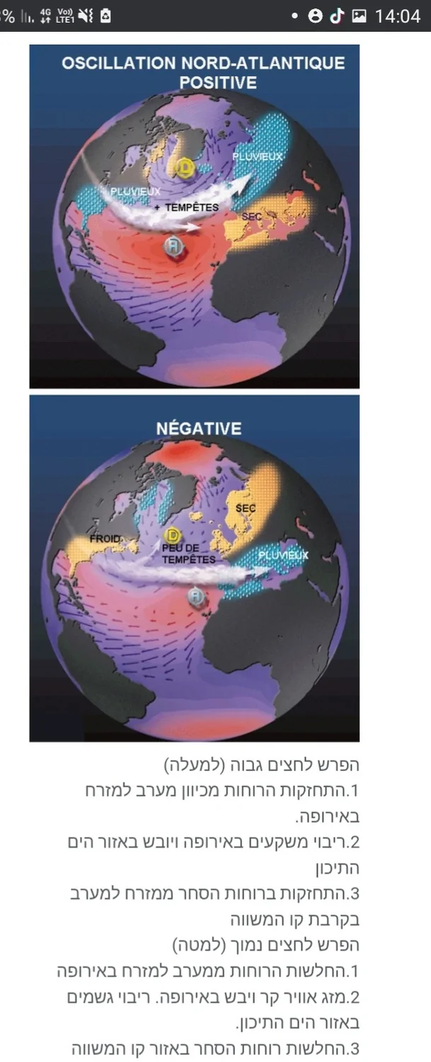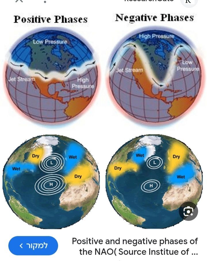 NAO התנודה הצפון אטלנטית יכולה להיות חיובית או שלילית ואלו האפקטים של שני המצבים