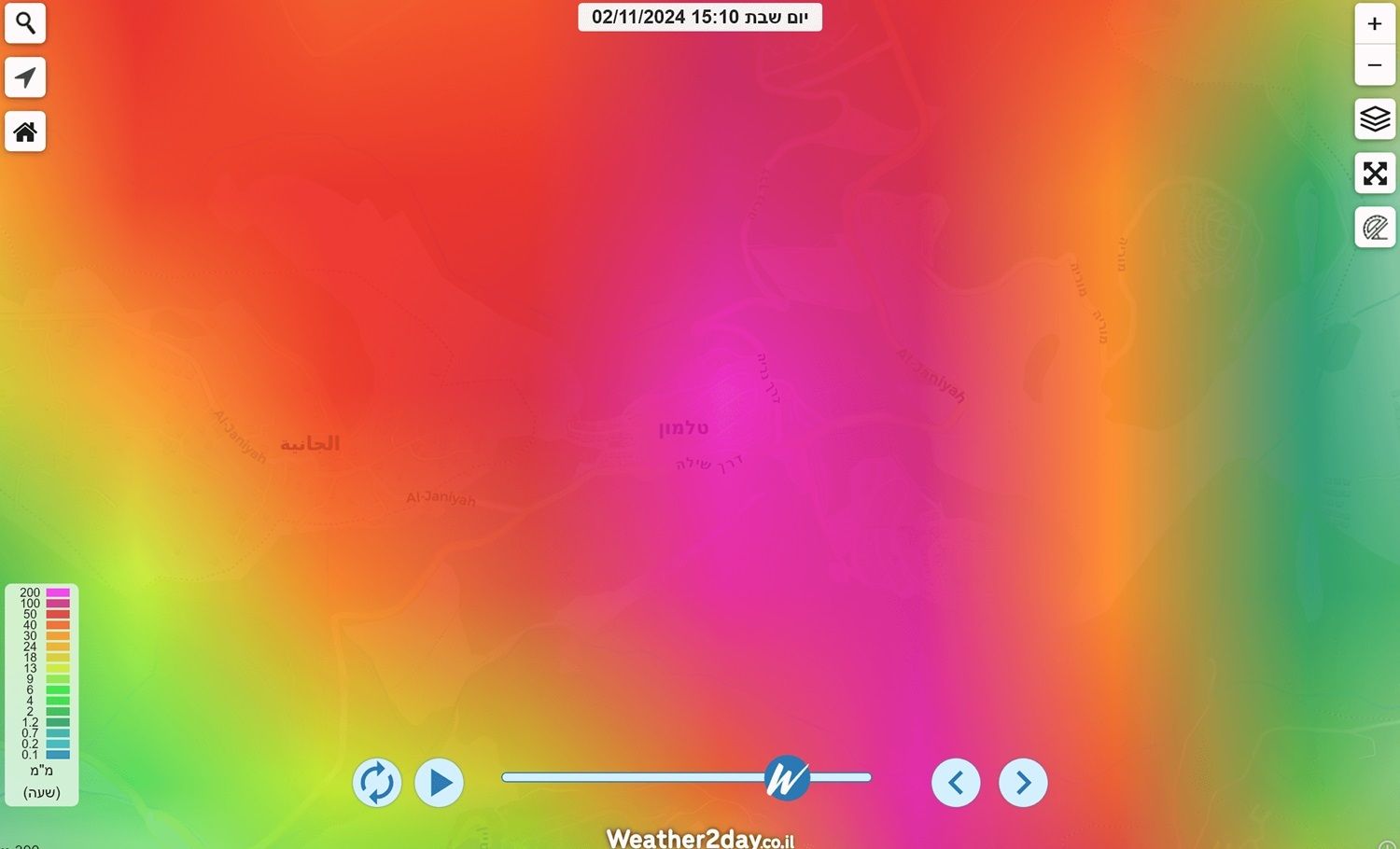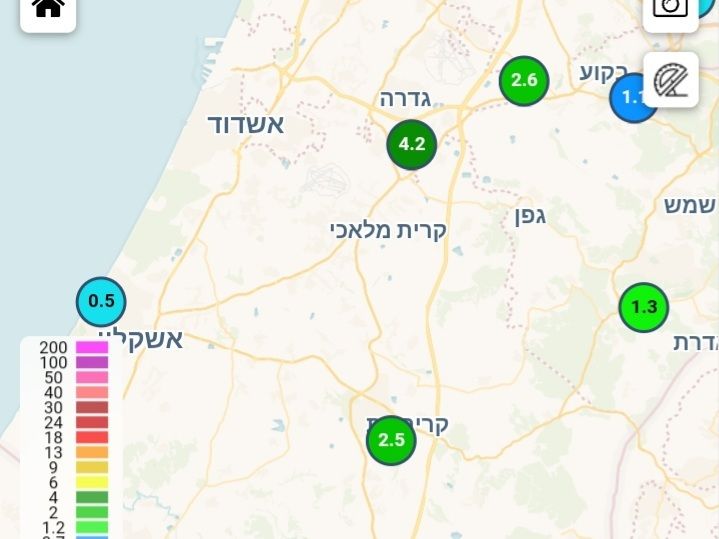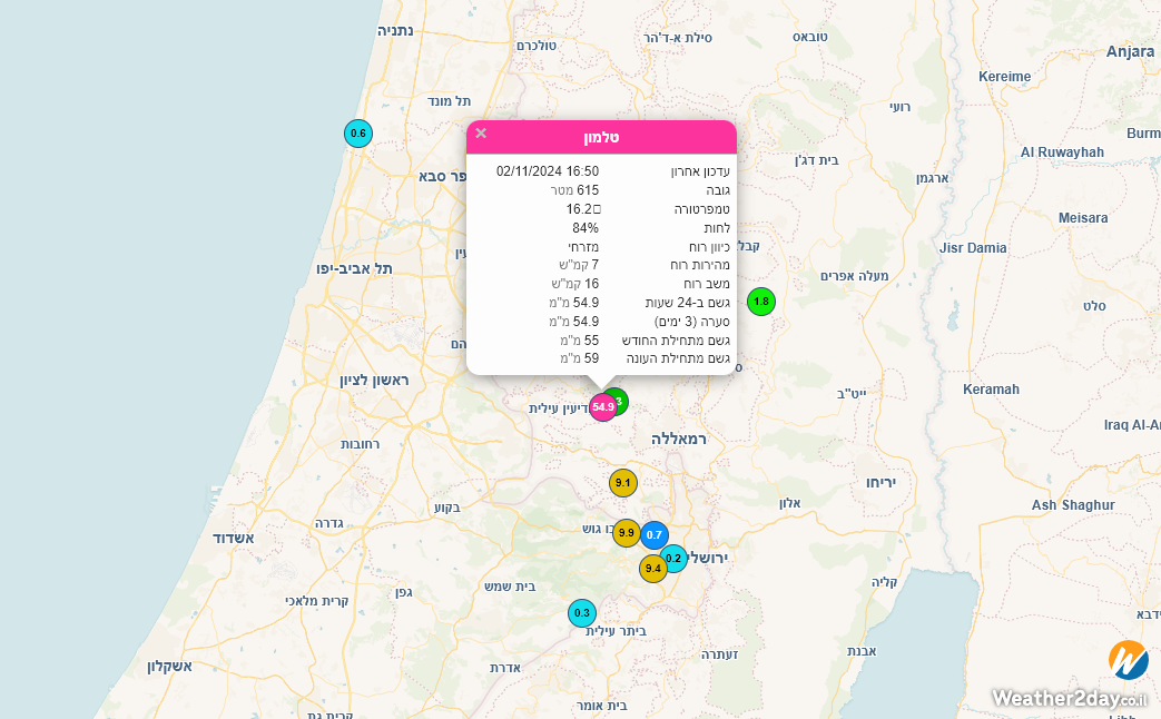 - עוצמות של 200 ממ"ש בטלמון מוקדם יותר הביאו את הכמות הנאה הזו בתחנה Weather2day