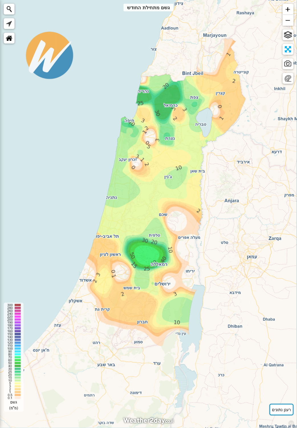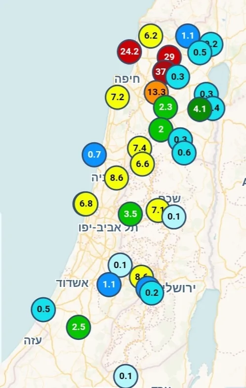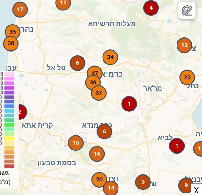 אזור ירושלים וגליל תחתון קרובים ל-10 ממ