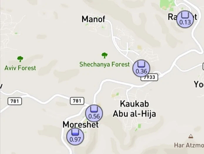 גם לי המדידה הזו נראית חשודה וגם שים לב שהקטע הסגול הוא גדול יחסית אז איך תחנו סמוכות מציגות כמות קטנה בהרבה?