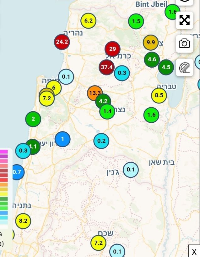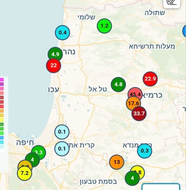 - חווה חקלאית כרמיאל מדווחת עד 22.6 מילימטר עד לשעה 17:00 איתן