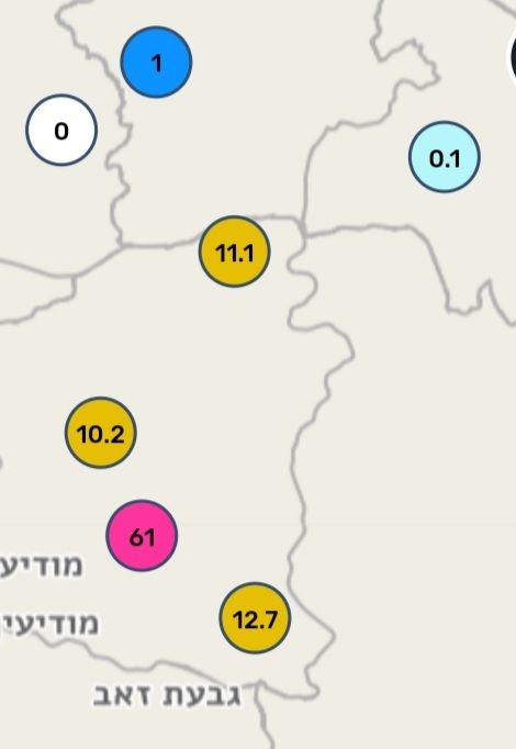 גם תחנת ירושמיים מדדה עוצמה רגעית של 128 ממ"ש ובסה"כ ירדו שם עשרה מ"מ