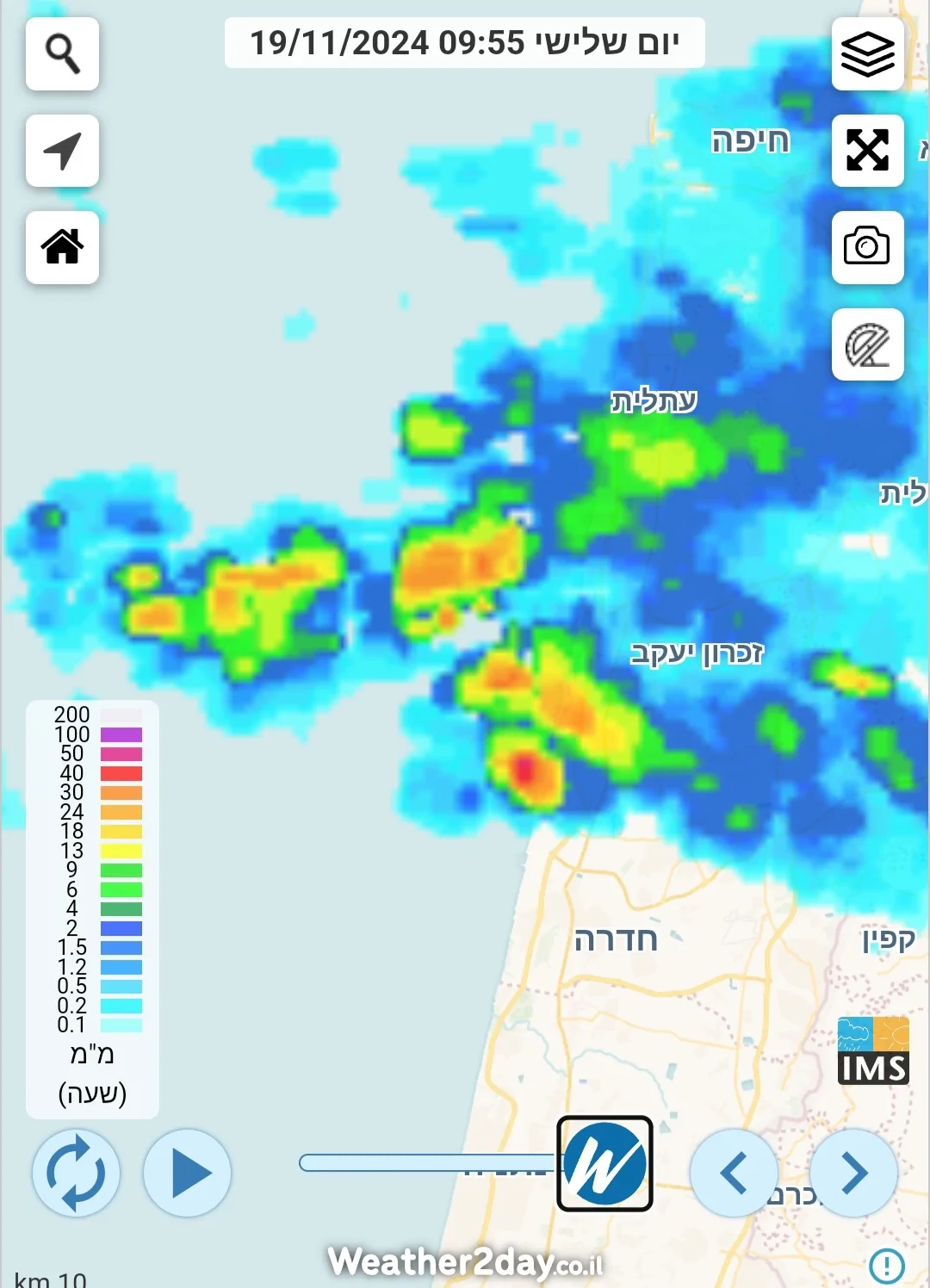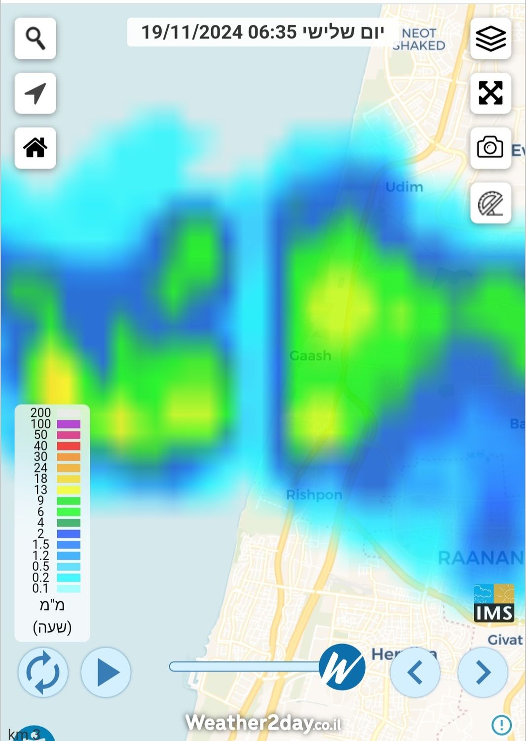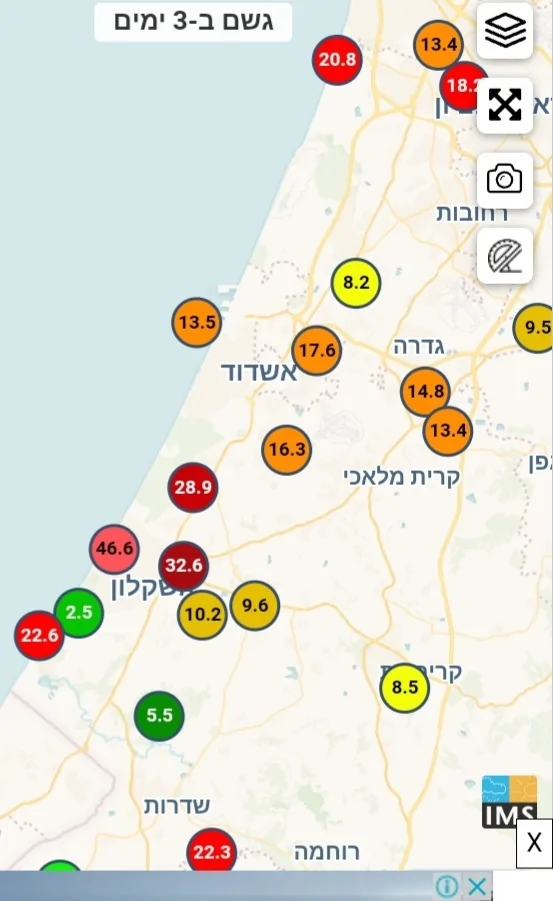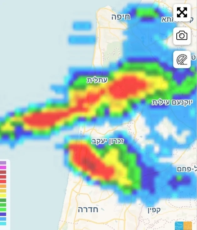 נתוני מפה באזור נתניה וזכרון מראים על כמויות של 20-30 ממ.... אנומליה במייטבה