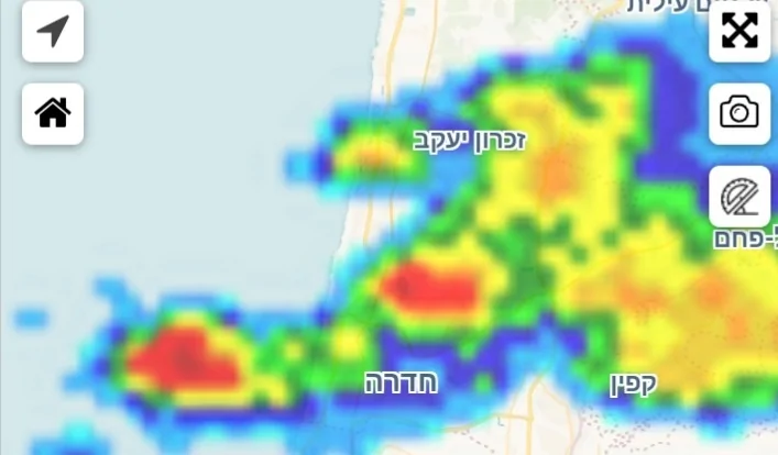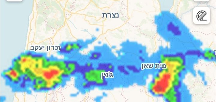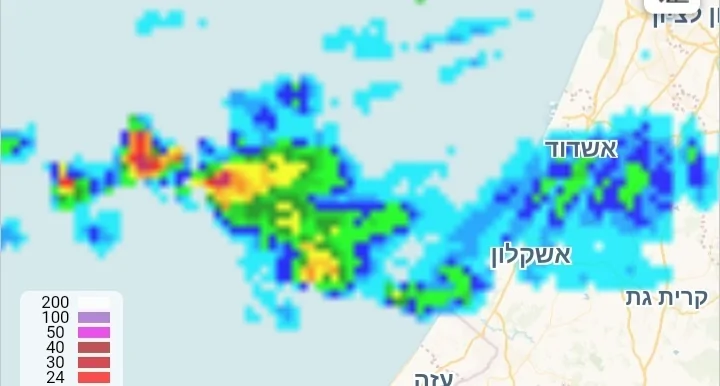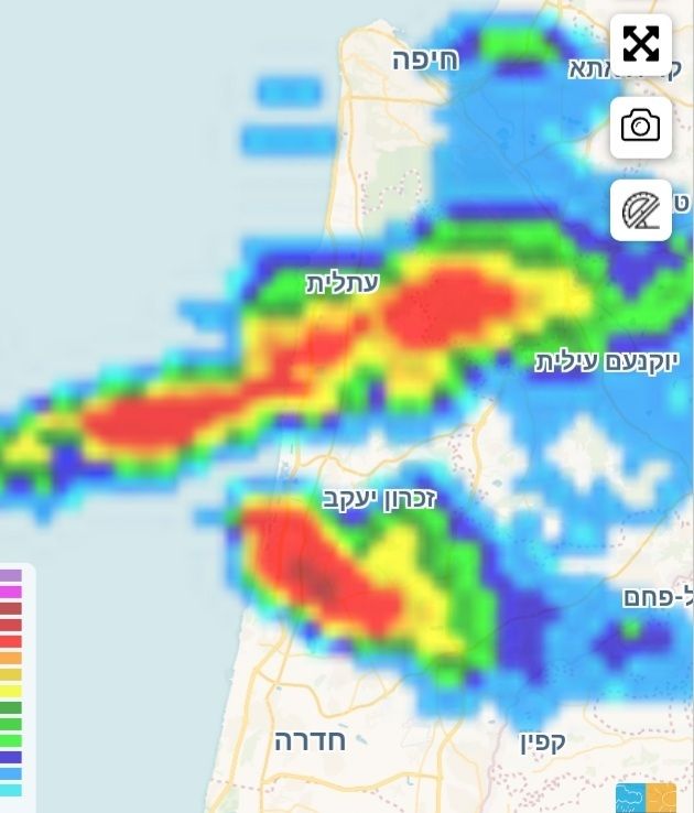 - גשם כבד מאוד עכשיו אדום במכ״ם איתן
