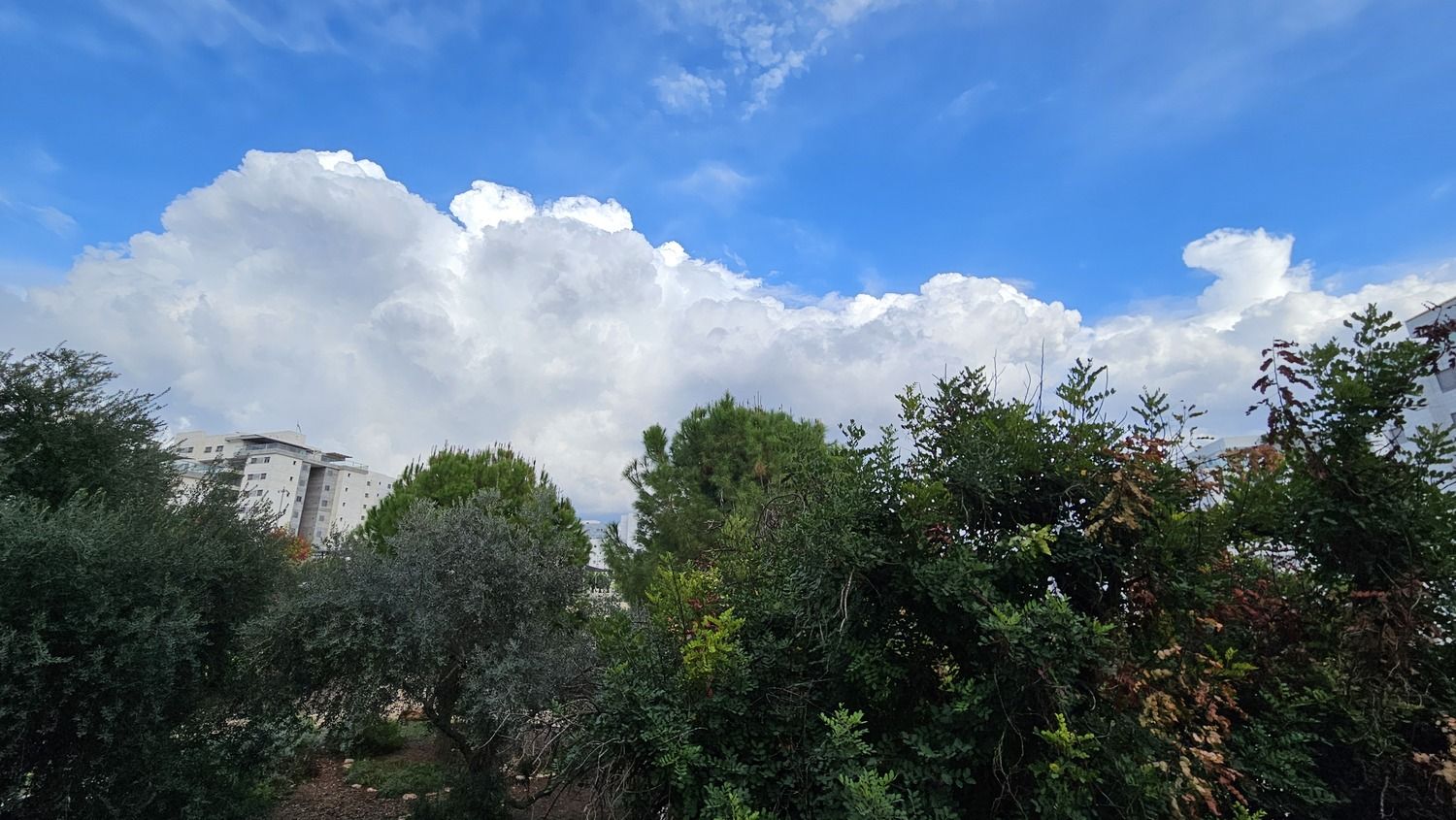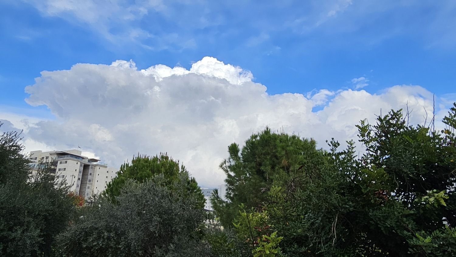 בתמונות: העננות המפותחת ממזרח לנו שצילמתי לפני חצי שעה מהמרפסת.