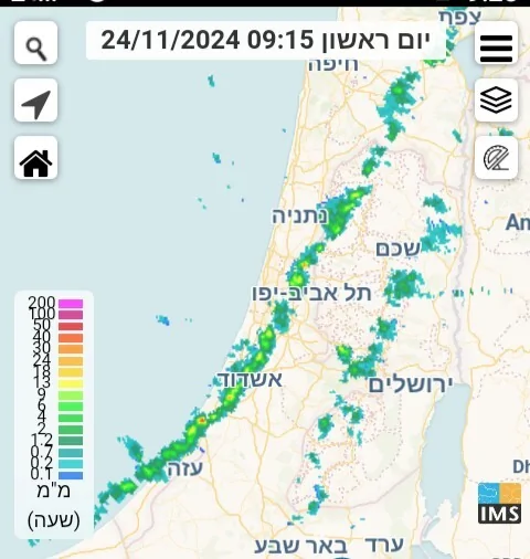 התחיל גשם אם עוצמות דרומית לחיפה לפי המכם