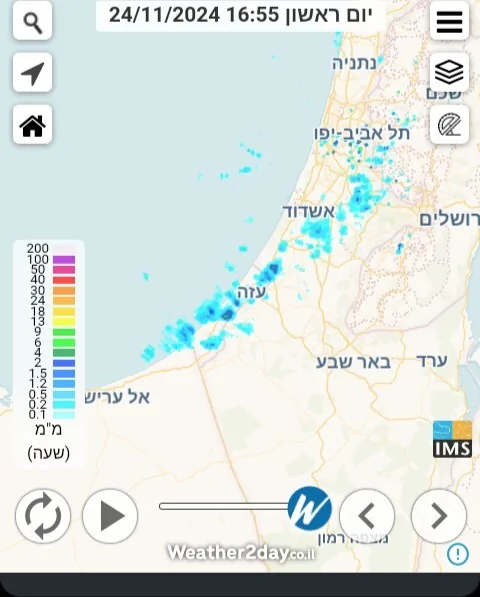 - נראה שגשם בדרך לצפון ולעזה. ויש טיפטופים בקו החוף בין אשדוד לתל אביב. נעם
