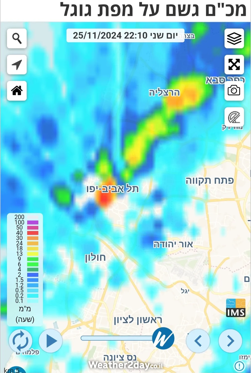 - תל אביב צפון ישן גשם מתחזק ונחלש פז