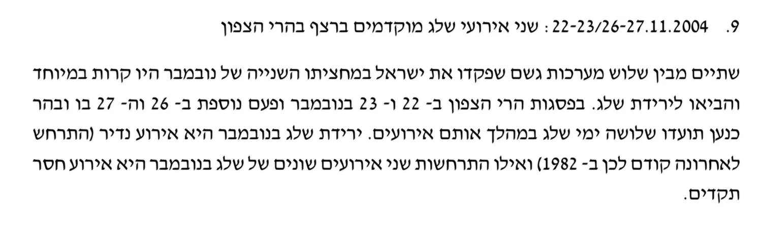- היו 2 אירועי שלג רצופים בנובמבר בהרי הצפון ב-2004 אבי (חריש)