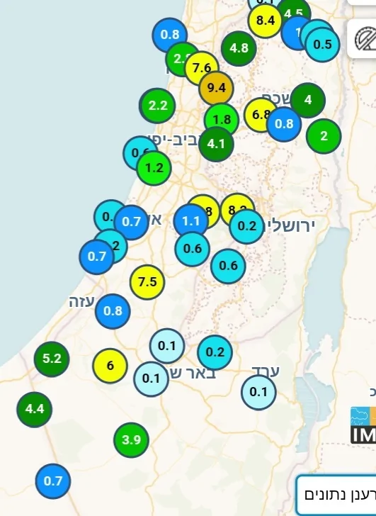 (הבדל גבוה מצפת הר כנען כיוון שבמערכת הגשם לפני שבוע וחצי היא קרסה למשך יותר מיום)