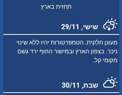 - יש אכן צפי לגשם אבל רק בחוף חנוך א