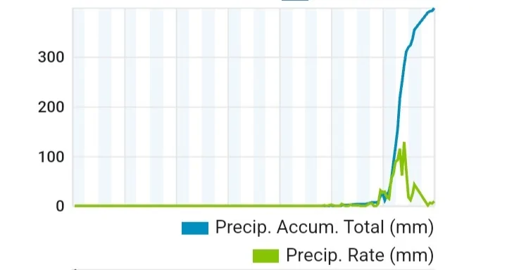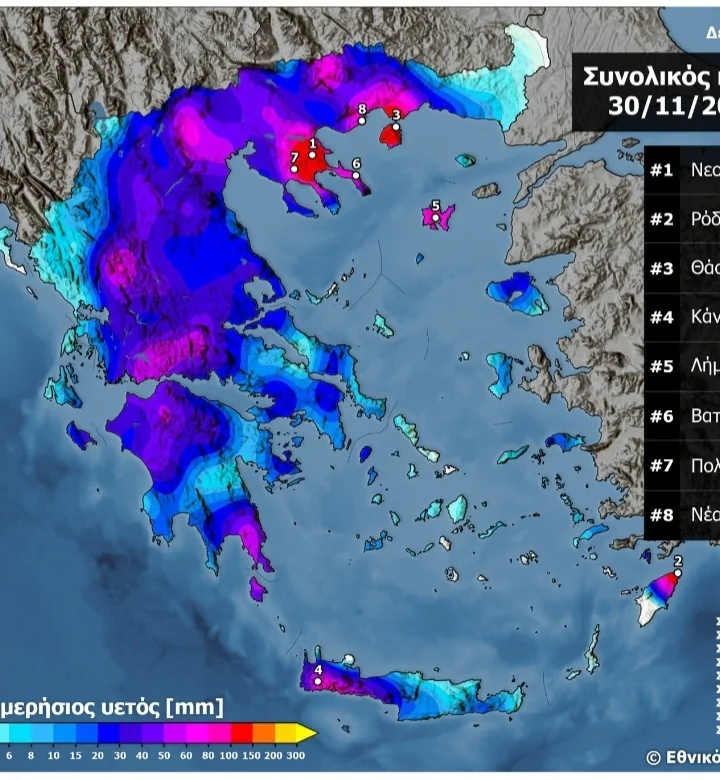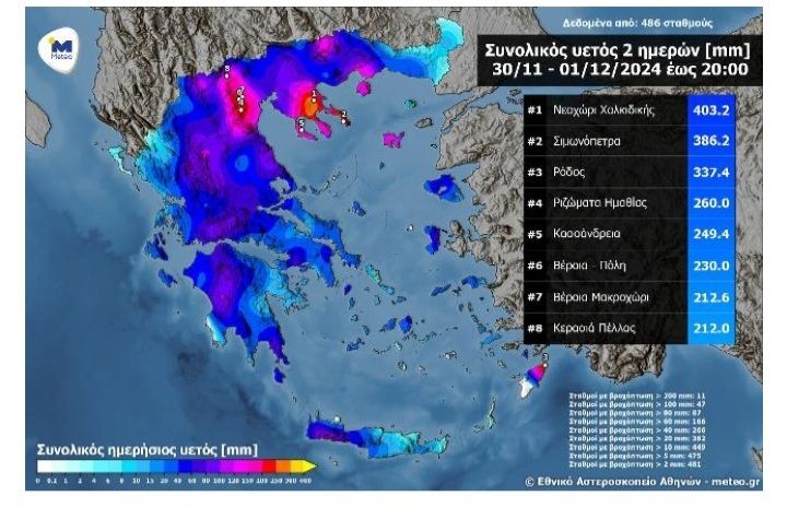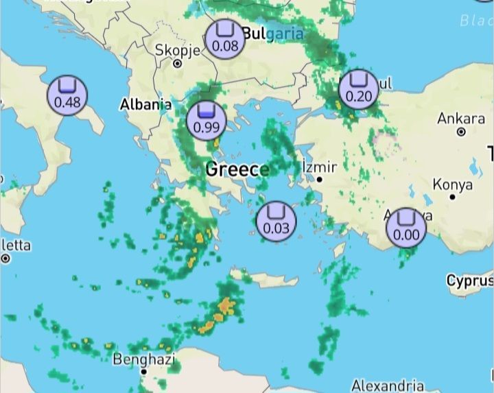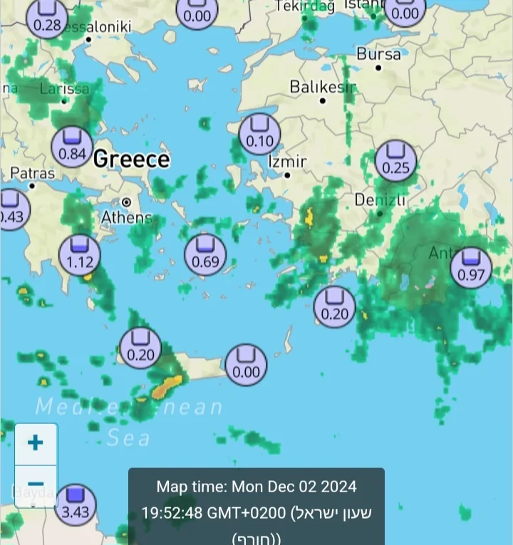 העיירה Pastida מערבית לעיר רודוס חטפה כמות מכובדת של 450 ממ, רובם אתמול