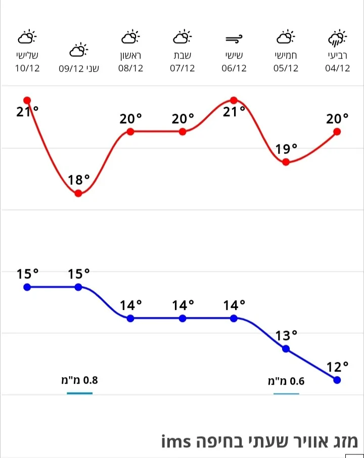 - בחיפה נהיה מעונן וקריר עם רוחות וגשם בעוצמה בינונית אמיר