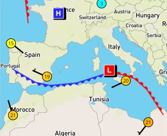 - בעוד Bora מתפוגגת, מערכת חדשה מתארגנת במערב הים התיכון חנוך א