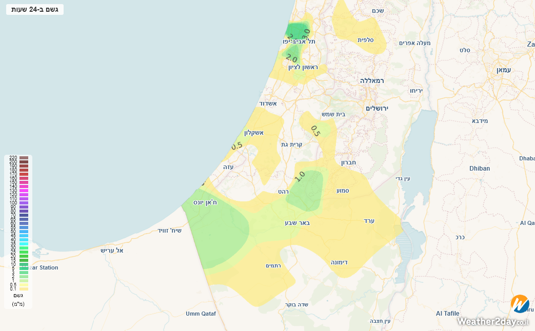 גשם קל בבאר שבע בין השעות 6 בערב ל-10 בערב