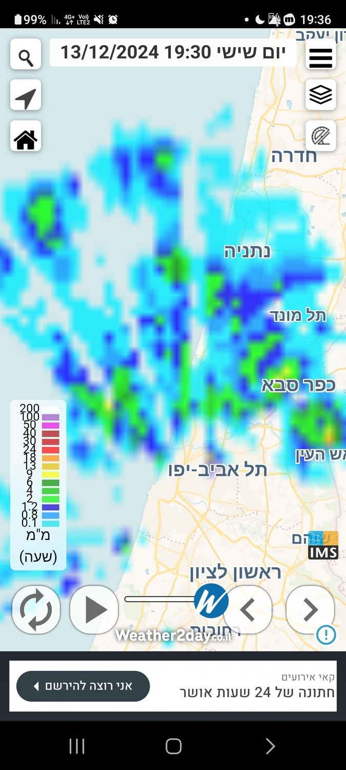 טיפטופים בכמה מקומות בארץ כרגע לפי המכ"ם.