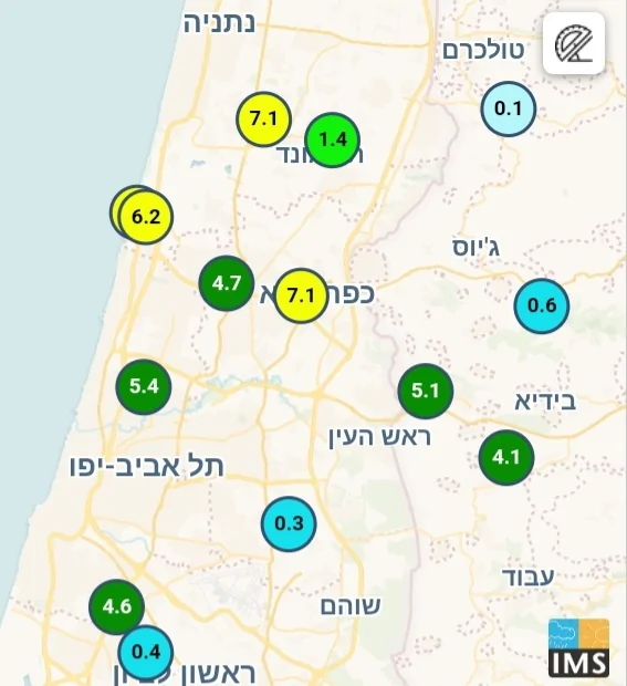 - בוקר טוב - אתמול בערב 3.3 ממ + 0.3 ממ מחצות (4.2 לדצמבר - 40.2 ממ לעונה) ראש העין