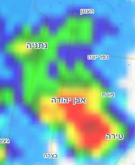 - באבן יהודה גשם ביניני עד חזק כבר 20 דר ירון