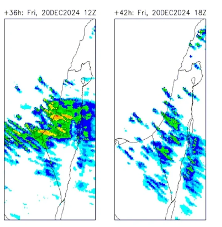 אם כבר ישנה התמתנות בשני העדכונים האחרונים לערכי השיא, המשקעים יותר מפולגים, אך גם זה יכול לקרות עקב הטווח שמכיל יותר ימי גשם אפשריים. רק אזורים מצומצמים מאוד, קרובים לחוף, צפויים לקבל 40 מ"מ ויותר. התחזית לחקלאים צודקת, אין טעם לתת צפי משקעים מאוד גבוה שהצפי הוא כל כך מקומי. לאחר מיצוע של סקלה ארצית אנחנו מדברים על כמות גשם בכמות חד ספרתית ב90 השעות הקרובות. אם לא נקבל איזה גל רוסבי, גרסה דועכת מאוד של השקע המנותק, המצב שלנו יהיה רע מאוד.