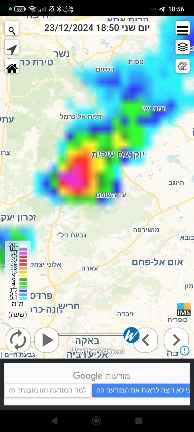 - הגשם נסע דוך מזכרון עד נהלל עם 40 ממ ביקנעם עילית חנוך א